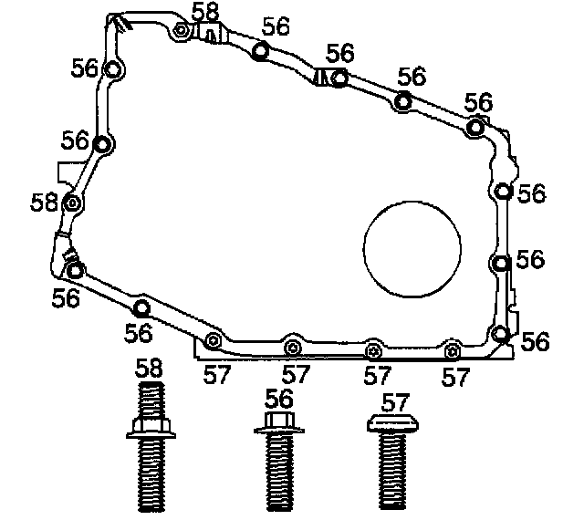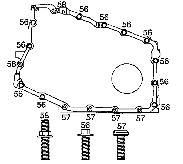 ^ Tighten the case side cover bolts (56-58) to 24 Nm (17 ft. lbs.).