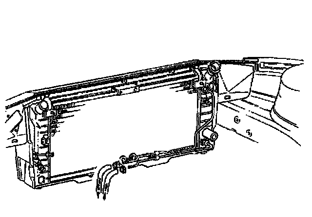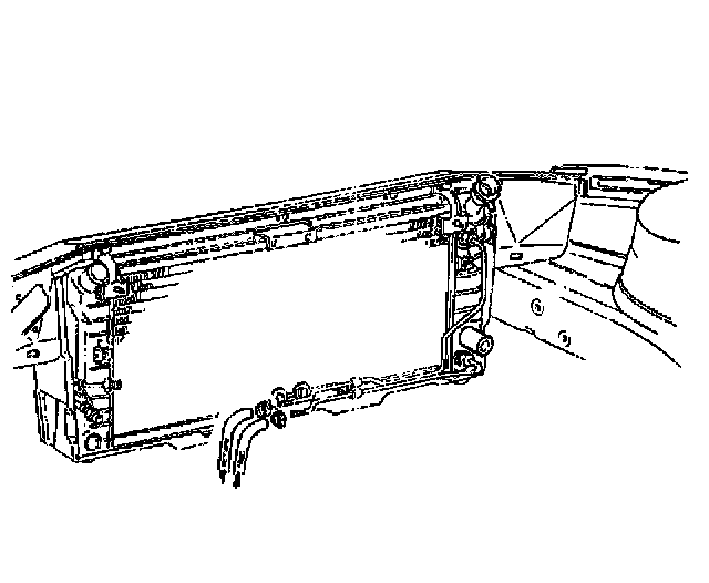 4. Remove the transaxle oil cooler clamps from the transaxle oil cooler hoses at the transaxle oil cooler or the quick connect transaxle oil cooler pipes to the radiator. Refer to Automatic Transmission Oil Cooler Pipes Replacement (With Threaded Fittings). Automatic Transmission Oil Cooler Pipes Replacement (With Quick Connect Fittings)