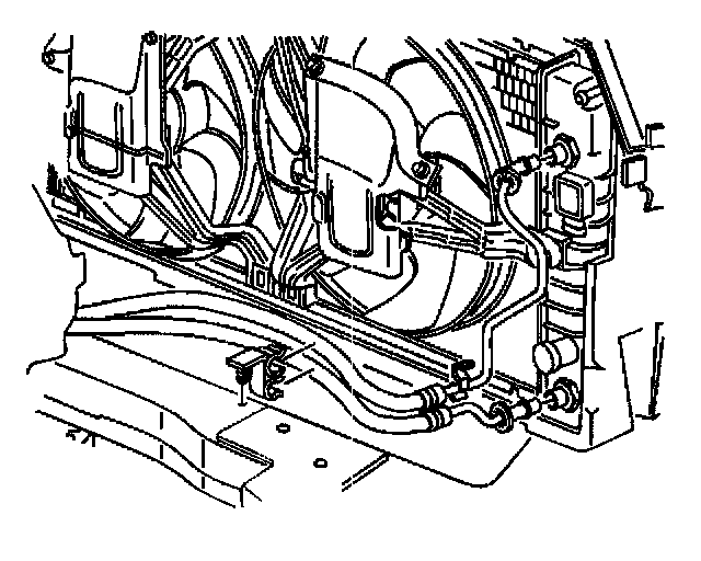 Notice: Allow sufficient clearance around the transaxle oil cooler pipes and around the hoses to prevent damage or wear which may cause fluid loss.