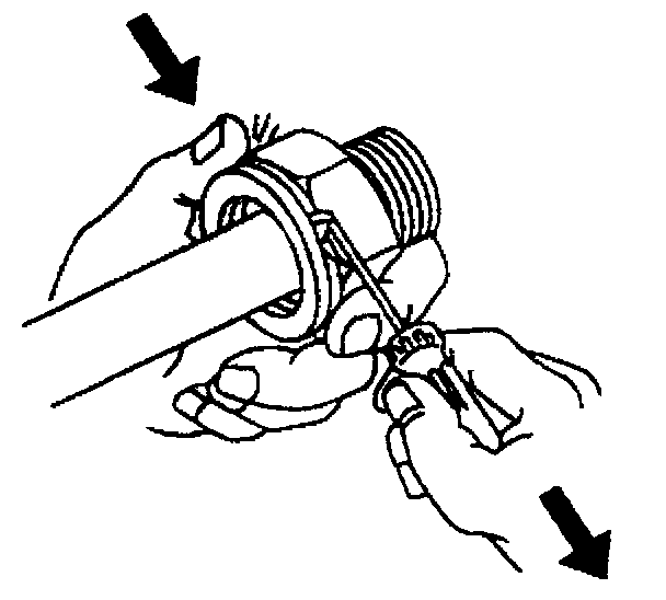 6. Remove the retaining ring from the quick connect fitting.
