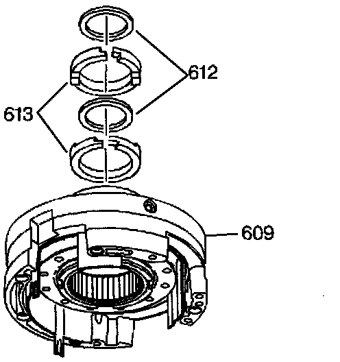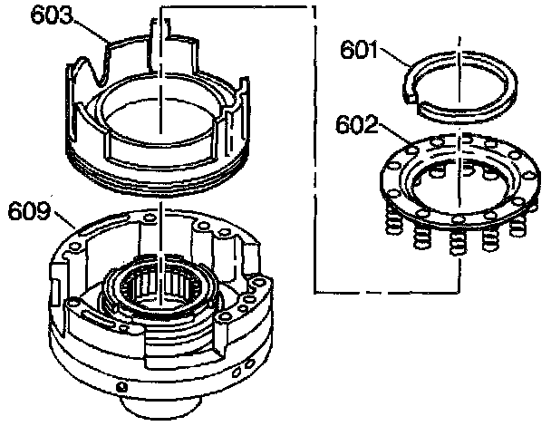 4. Insert the fourth clutch spring assembly (602) into the piston.