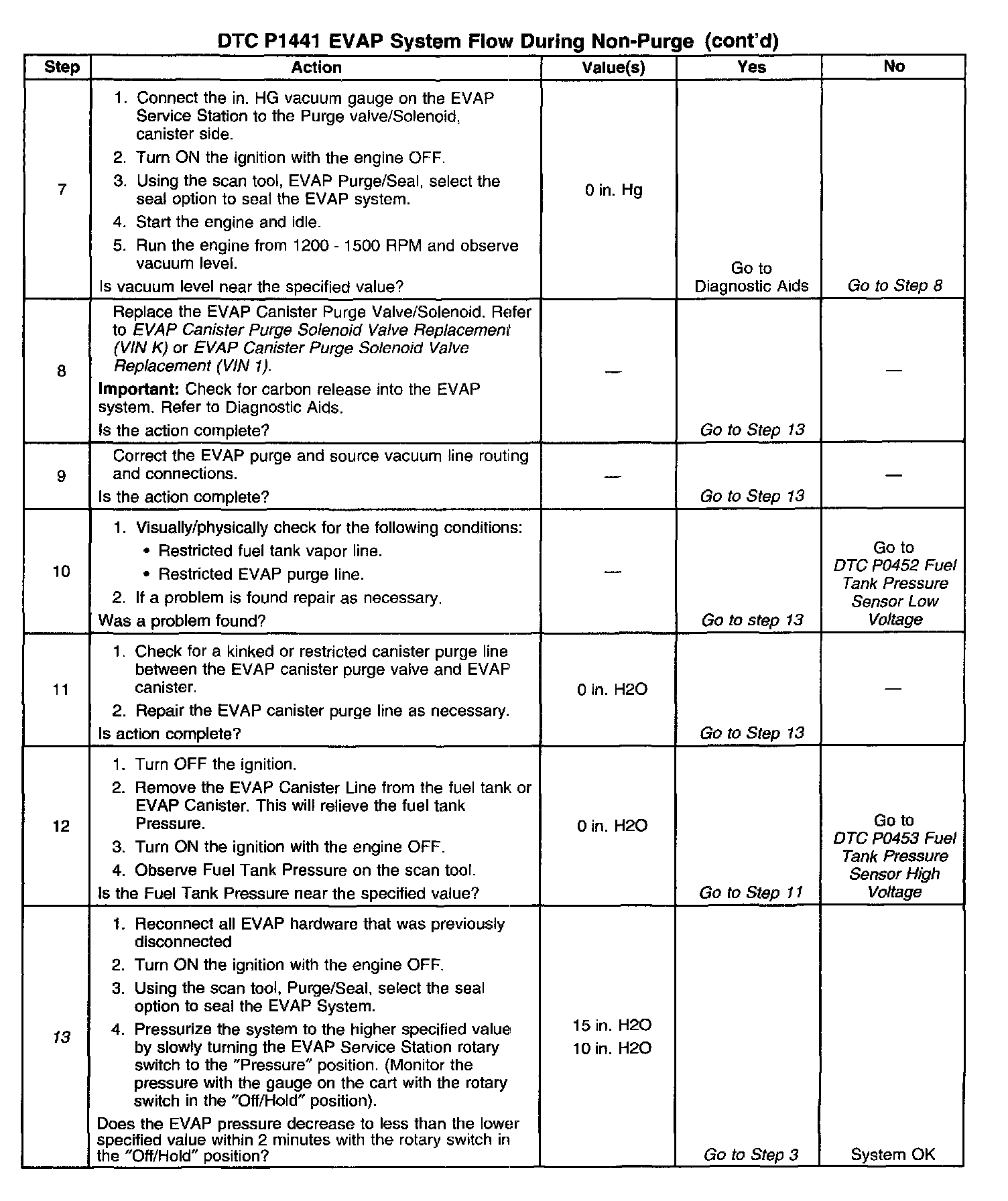 4. Checks for a leaking or stuck open EVAP canister purge valve/solenoid. the scan tool should read within 1.0 in. HG of the specified value.
