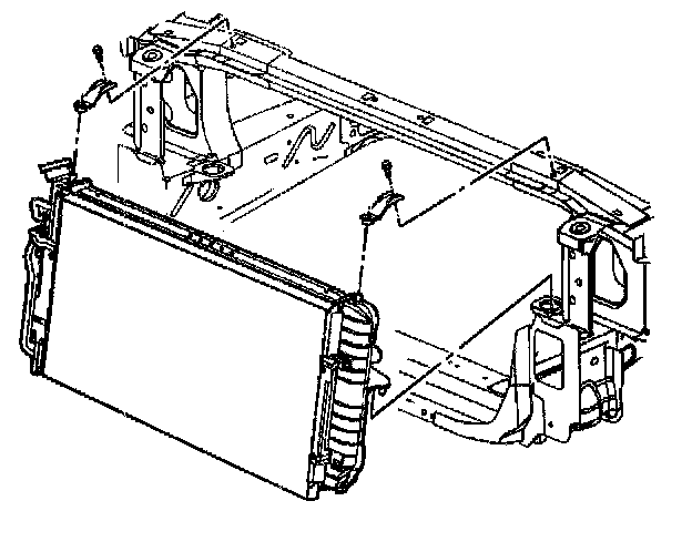 1. Install the radiator to the vehicle. Place the bottom of the radiator in the lower mounting pads.