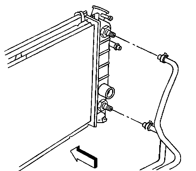 8. Connect the transaxle oil cooler lines to the radiator side tanks.