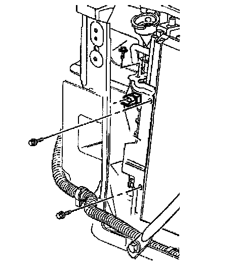 10. Remove the hood latch support from the upper tie bar.