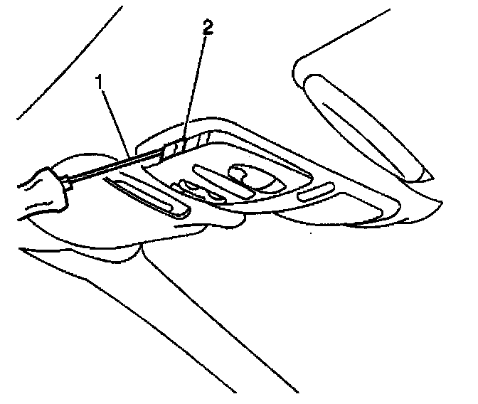 REMOVAL PROCEDURE1. Insert a flat-bladed tool (1) at the rear edge of the access door in order to disengage the lock tab (2).