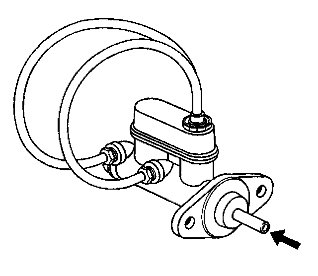 5. Open the secondary port to the atmosphere and depress the pistons to fully bottom out the master cylinder. To depress the pistons use a rod with a blunt end which will not damage the pushrod location on the primary piston, or cause contamination in the master cylinder bore.