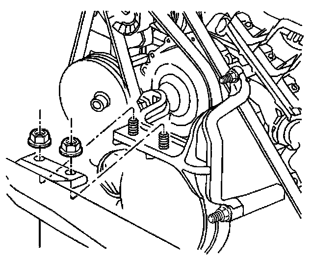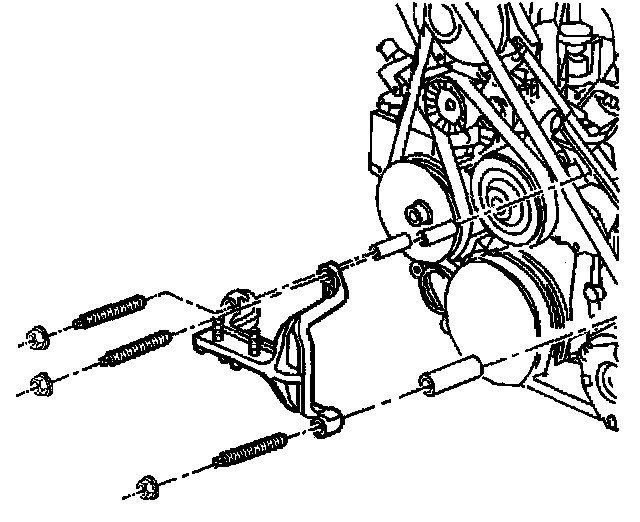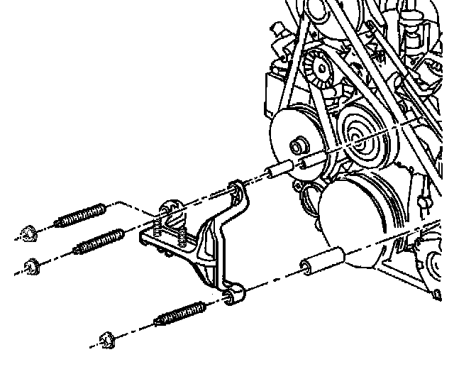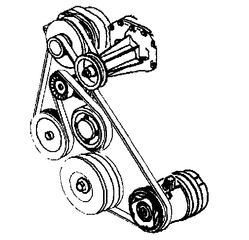 Removal ProcedureThe supercharged 3800 engine uses two drive belts. The outer belt drives the supercharger. The inner belt drives the generator, power steering pump, coolant pump and air conditioning compressor. All driven accessories are rigidly mounted to the engine. Drive belt tension is maintained by the spring loaded belt tensioners. Each belt has its own tensioner.
