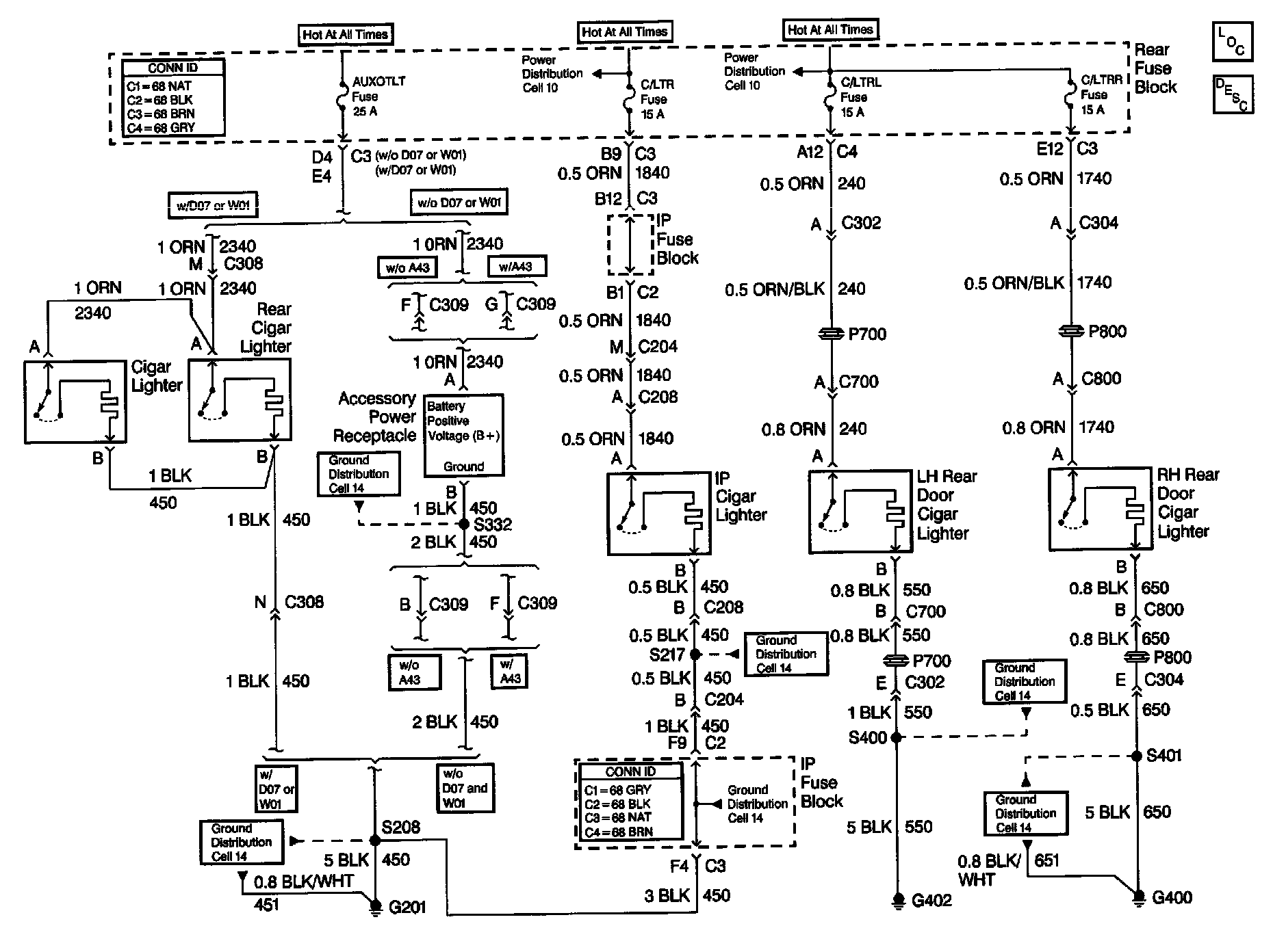 Cigar Lighter/Auxiliary Outlets Schematics: