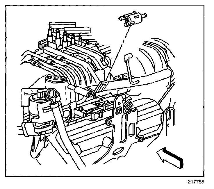 4. Bend the tab on the solenoid mounting bracket to remove the EVAP purge solenoid.
