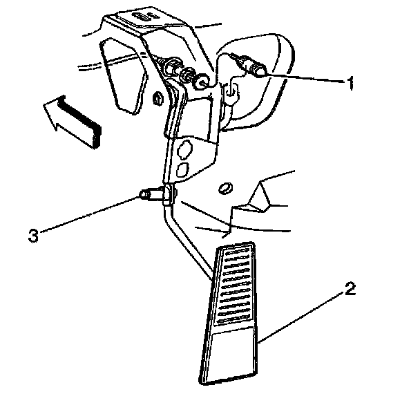 4. Remove the accelerator control cable (1) from the pedal by pulling straight out and up towards the top of the pedal.
