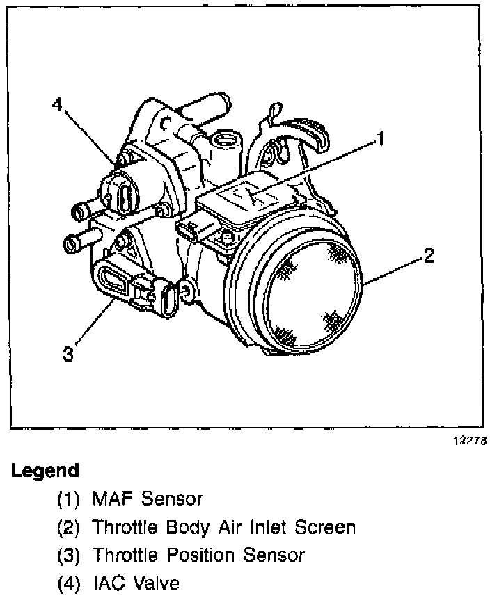 The throttle body has a throttle plate to control the amount of air delivered to the engine. The TP sensor, MAF sensor, and IAC valve are also mounted on the throttle body.