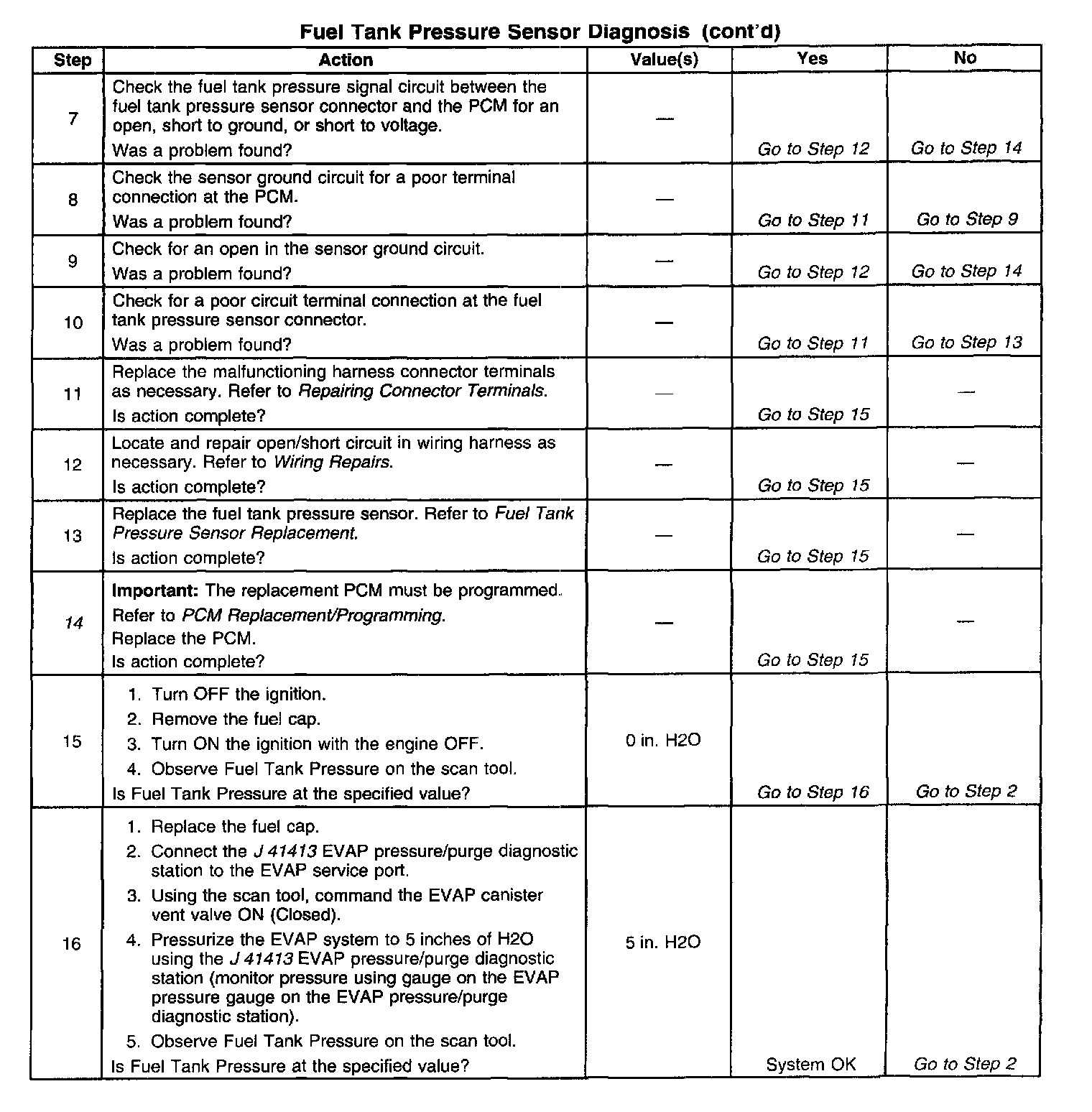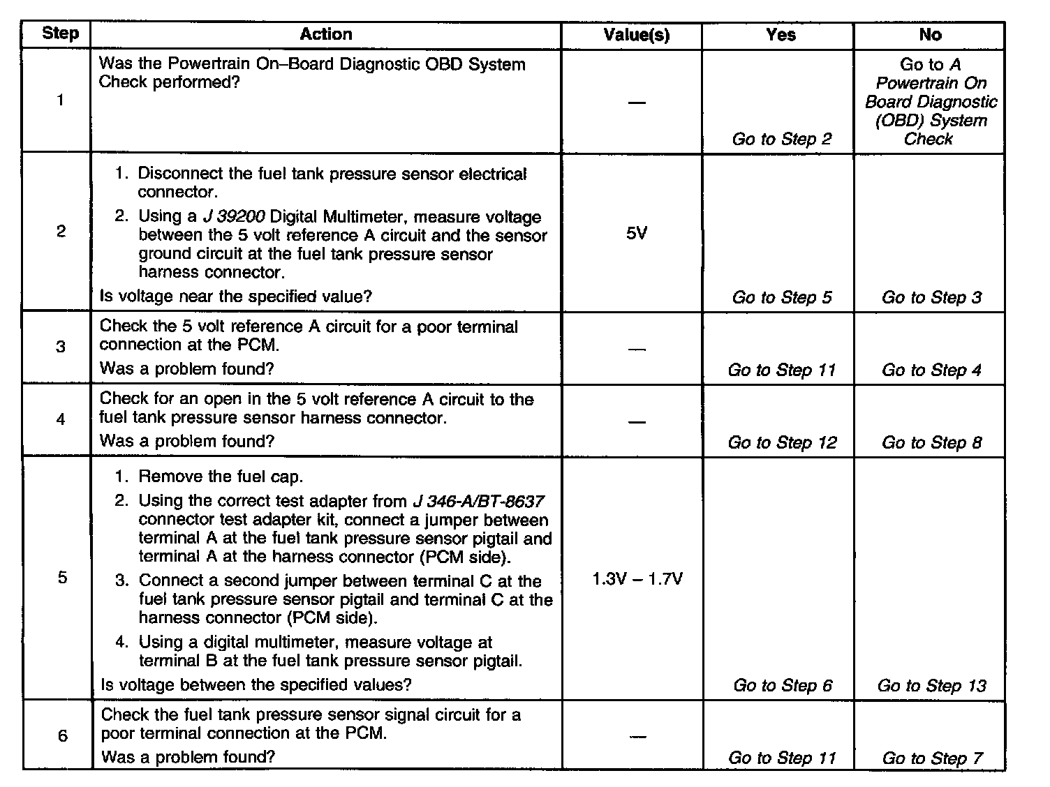 ^ This check requires a fuel sender assembly and an 0-ring to be installed in the fuel tank.