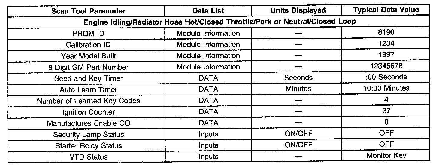 Scan Tool Data List: