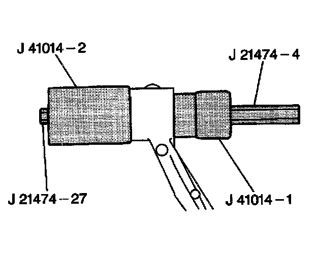 4. Install J 41014-1 (with small end facing the bushing), the thrust bearing and J 21474-4 onto J 21474-27.
