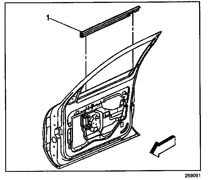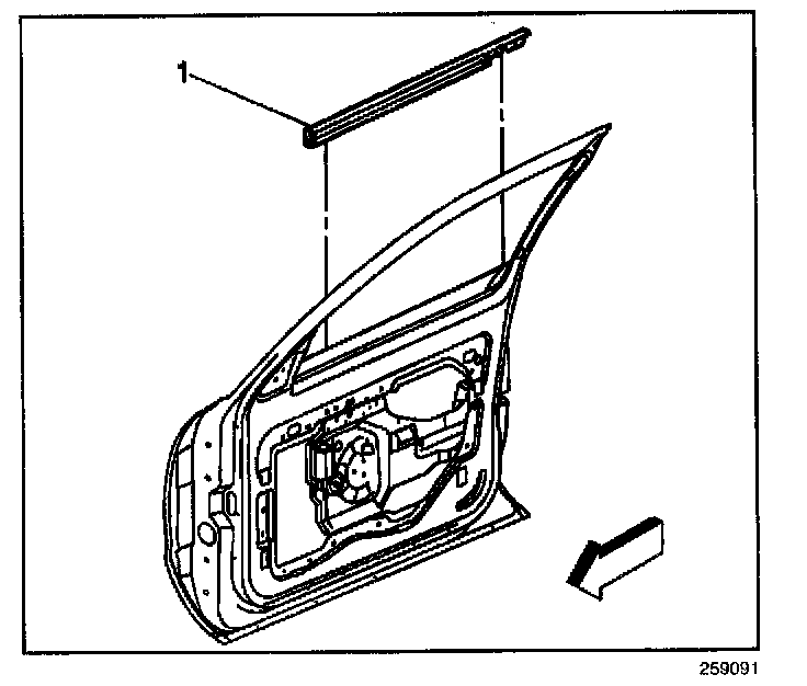 1. On the front door, position the rear end of the molding flush to the rear edge of the front door.