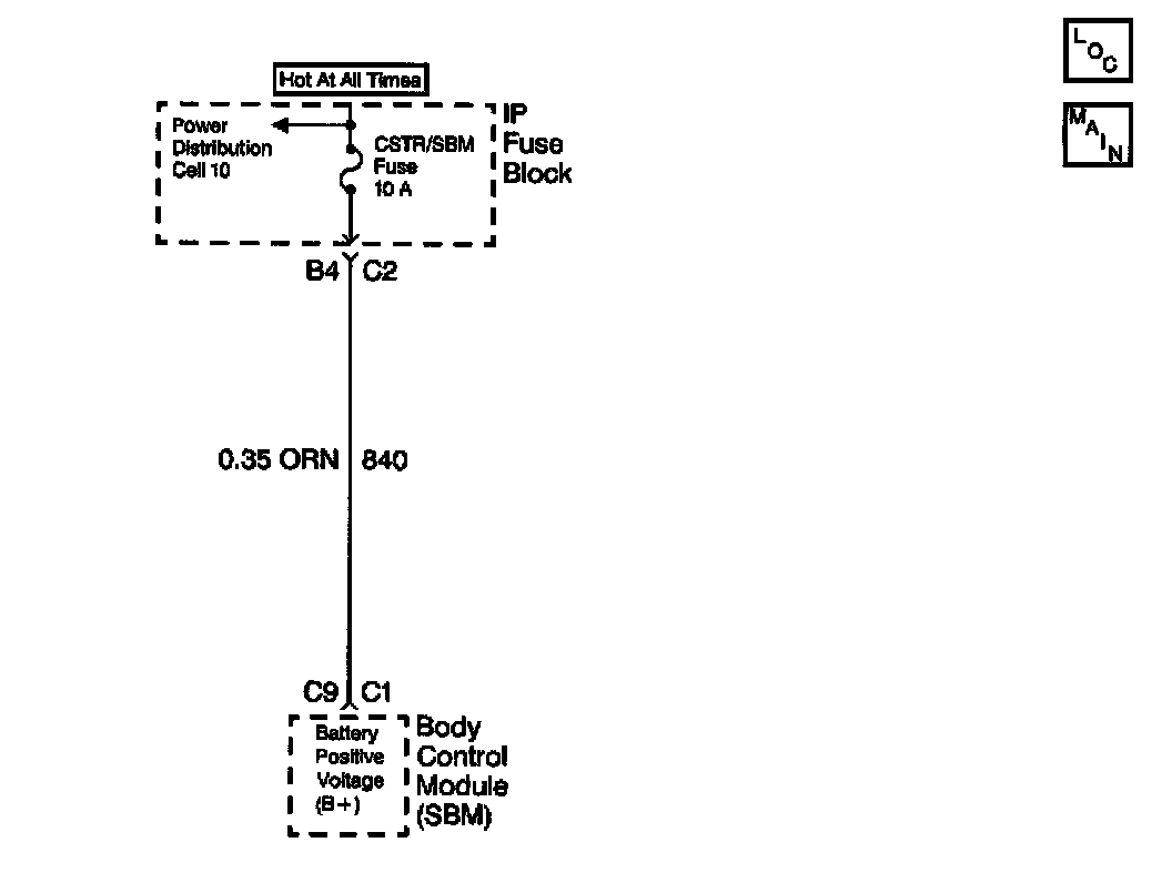 The battery voltage is supplied to the SBM at connector C1 terminal C9. The SBM determines if the voltage is within a valid operating range.