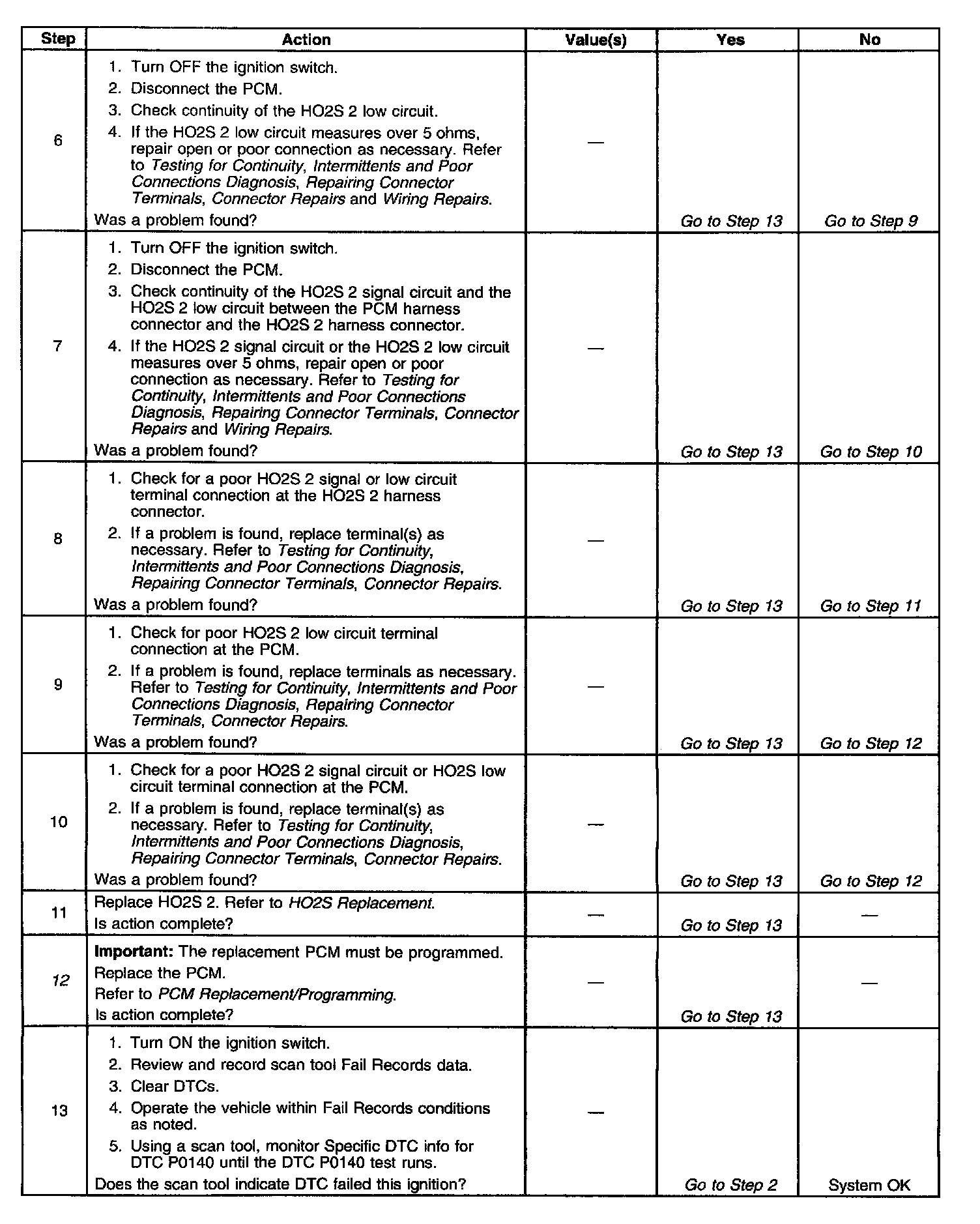 3. If the DTC P0140 test passes while the Fail Records conditions are being duplicated, an intermittent condition is indicated.