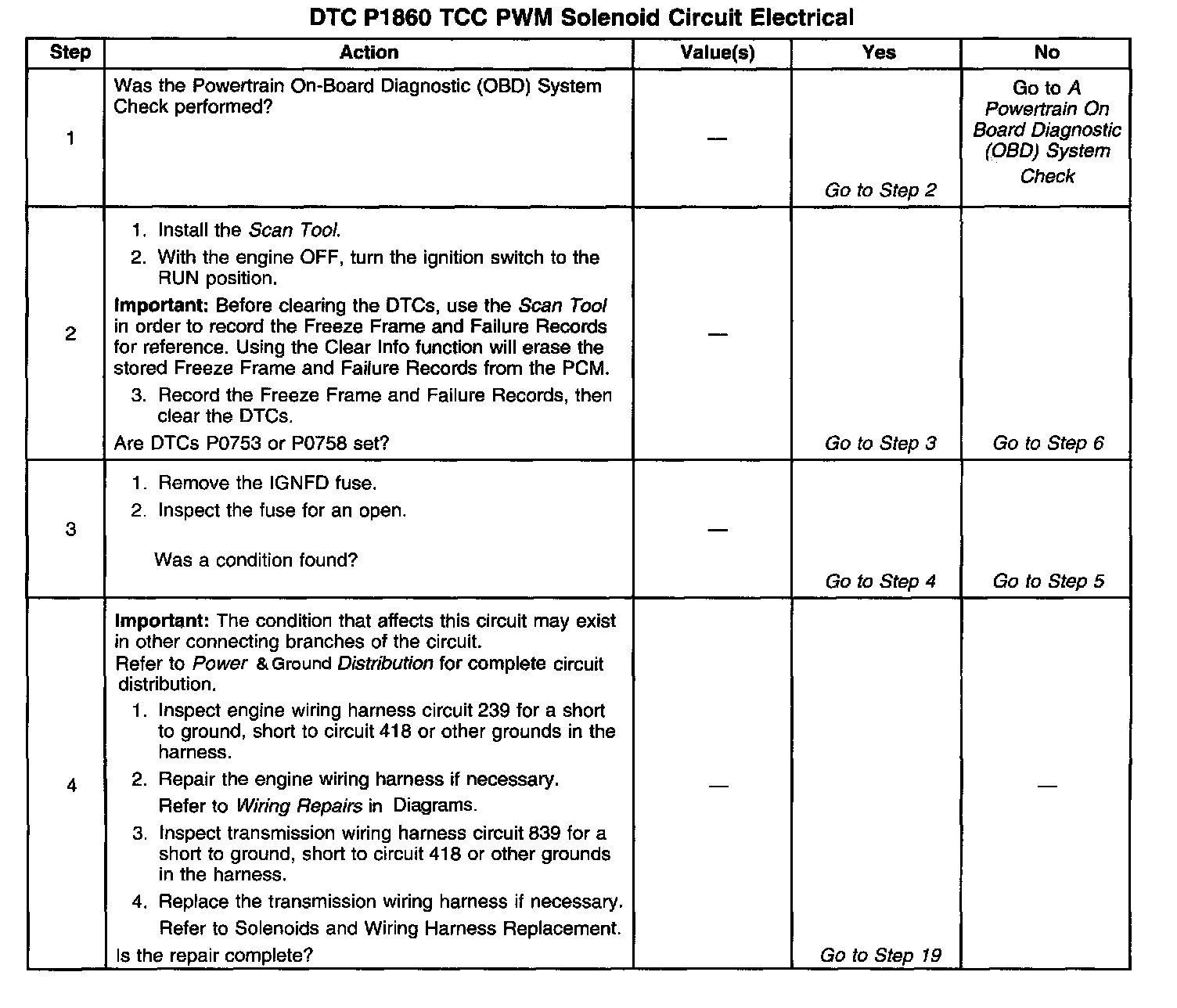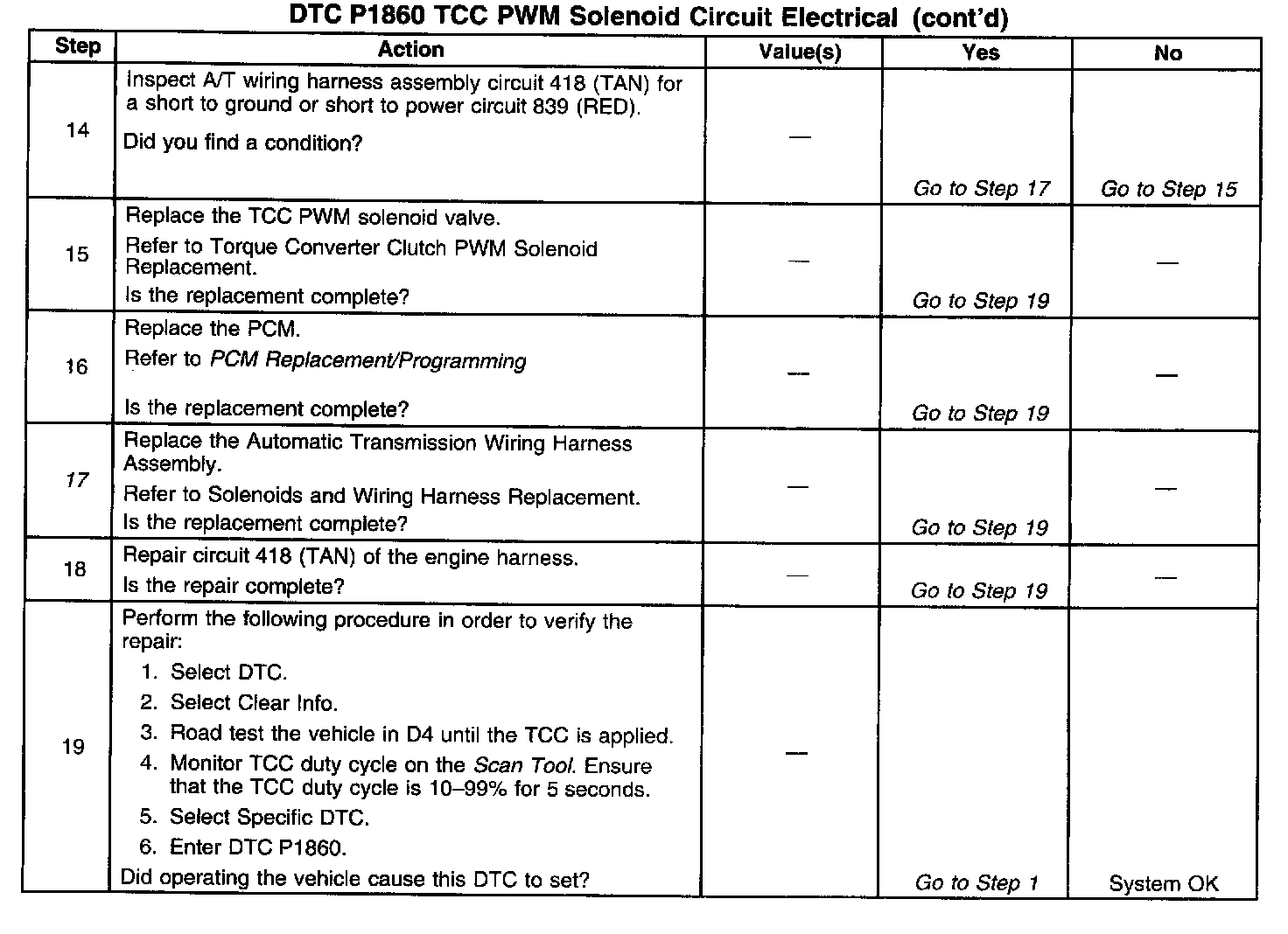 10. This step verifies that the TCC PWM solenoid is not shorted across its windings or increased its resistance.