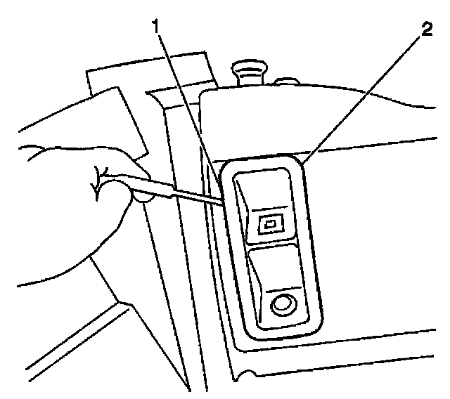 3. Remove the fuel door release/luggage compartment (valet) switch (2) from the face plate.