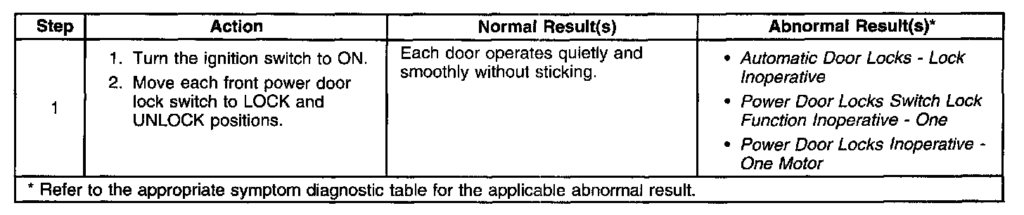 Power Door Locks System Check: