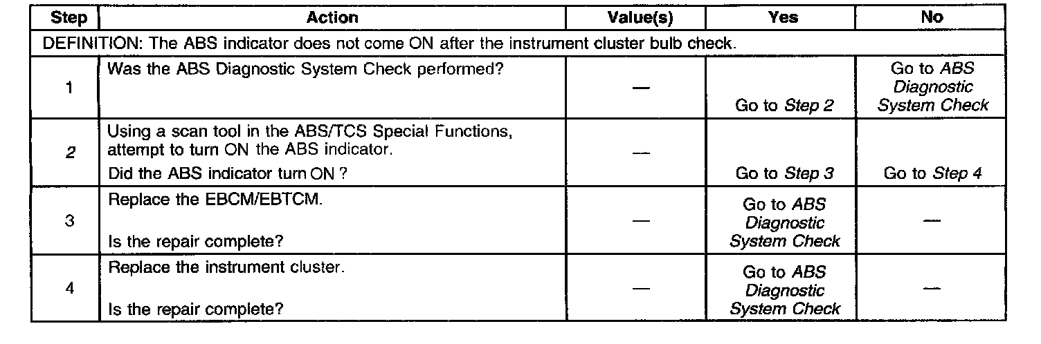 ABS Indicator Inoperative W/No DTC Set