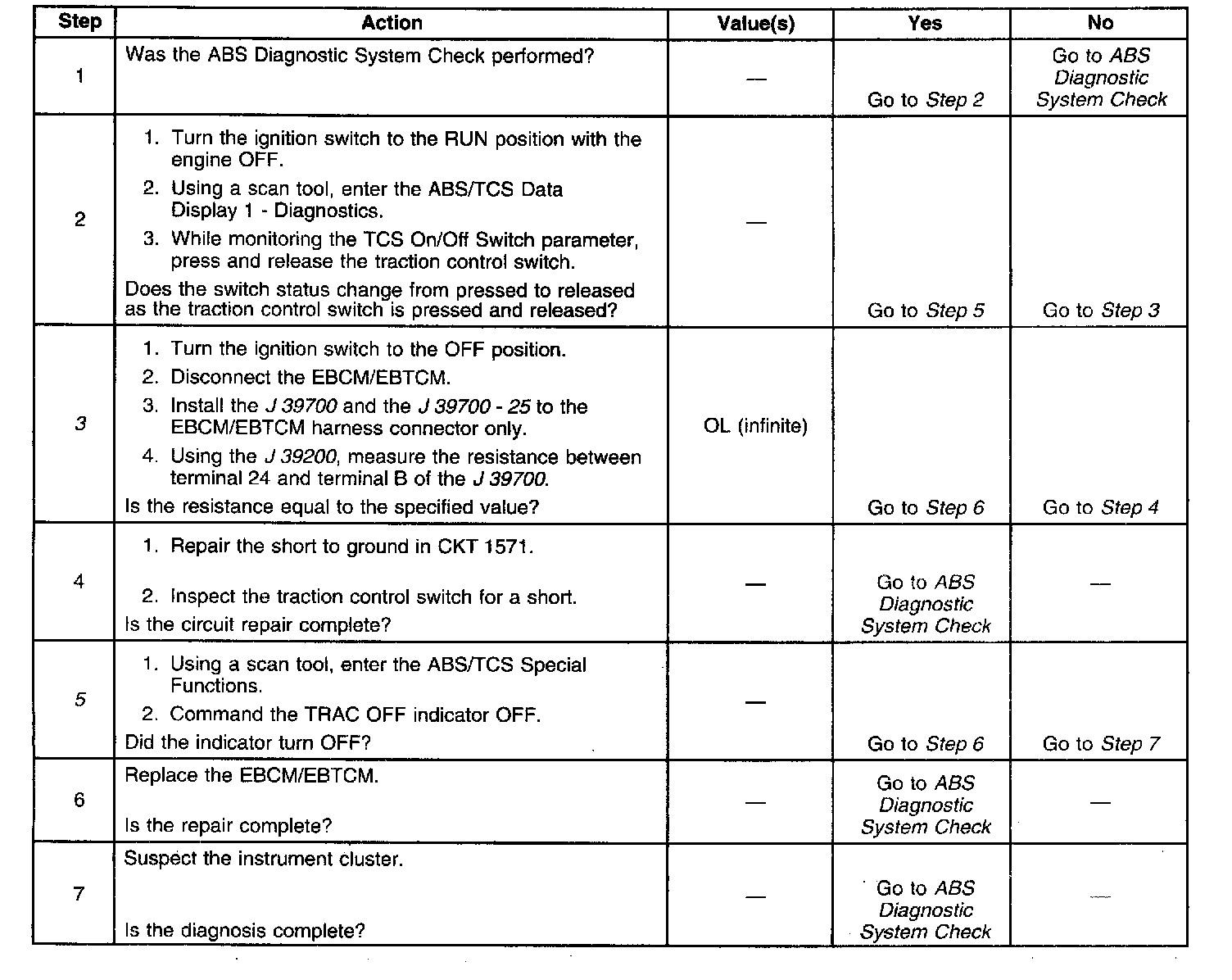 3. This step tests for a short to ground in the traction control switch or the circuit.