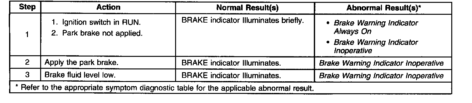 Brake Warning System Check