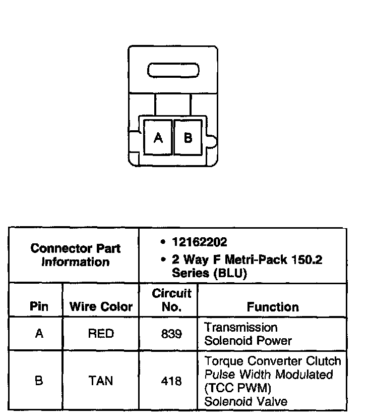 Torque Converter Clutch Pulse Width Modulated (TCC PWM) Solenoid Valve Connector, Wiring Harness Side
