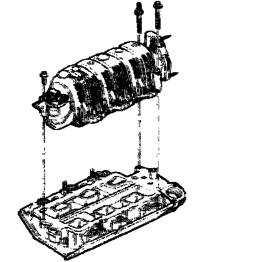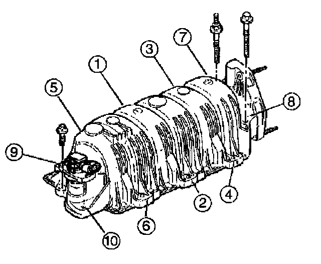 Notice: The two bolts which fasten the lower intake manifold to the cylinder head are accessible only after the upper intake is removed. The bolts are located in the right front and left rear corners of the lower intake manifold. Remove the upper intake manifold to service the lower intake.