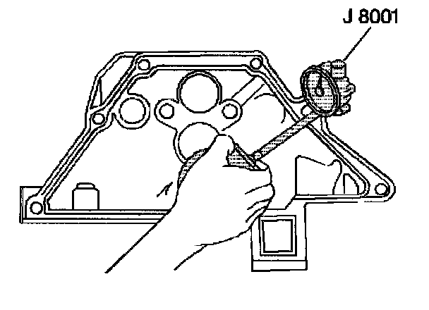 11.3. Place J 8001 on the transmission mounting bolt hole boss. Set the indicator to 0.