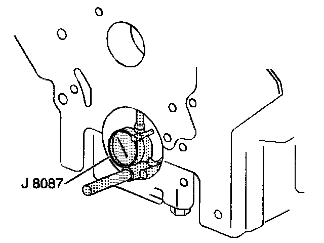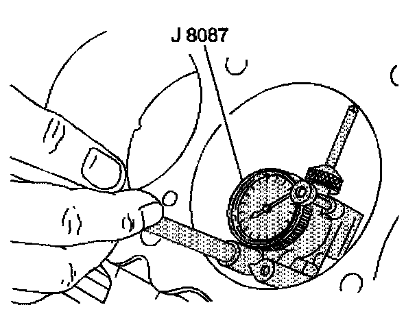 12. Inspect the crankshaft main bearing bores. Use J 8087 to measure the bearing bore concentricity and alignment at the following locations: