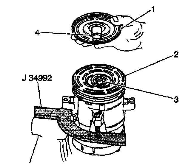 4. Place the clutch plate and hub assembly onto the compressor shaft.