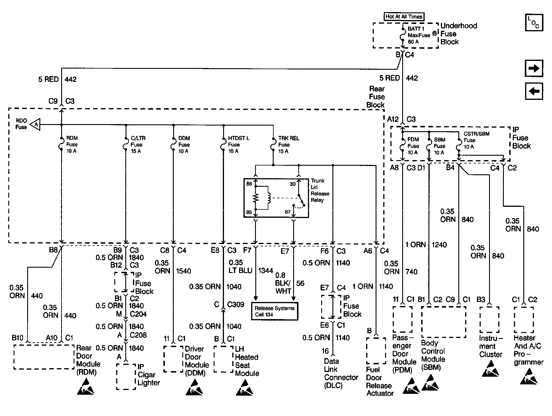 BATT 1, RMD, C/LTR, DDM, HTDST L, TRK REL, PDM, SBM And CSTR/SBM Fuses: