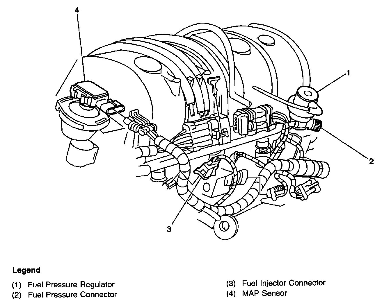 Fuel Pressure Regulator, Fuel Pressure Connector, Fuel Injector Connector, MAP Sensor:
