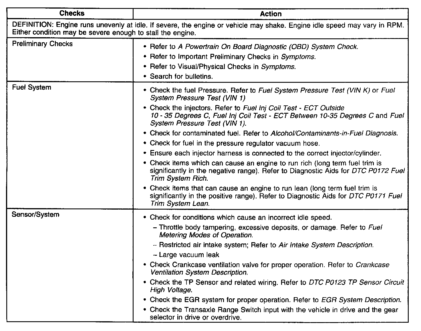 Rough, Unstable, or Incorrect Idle and Stalling