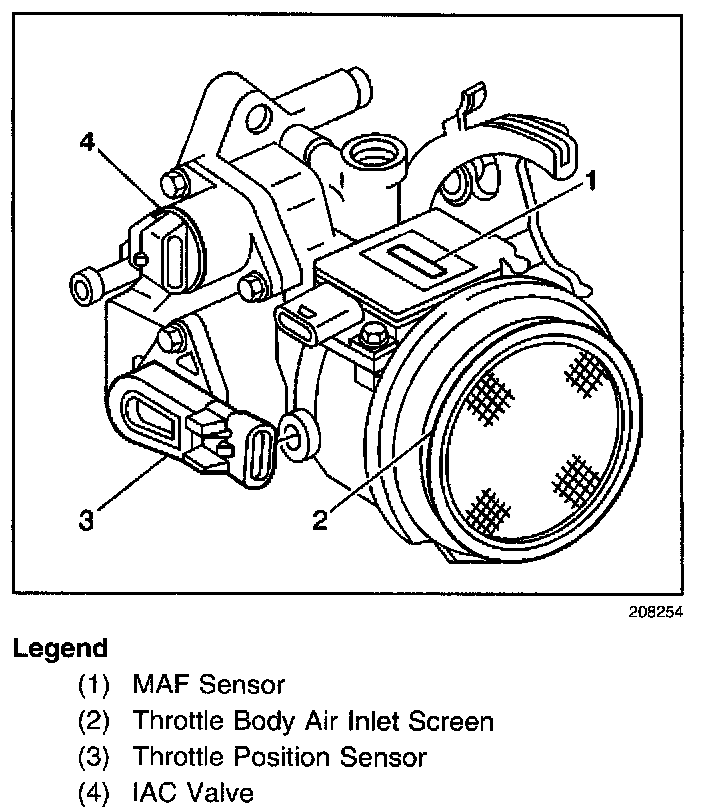 The TP sensor is mounted on the side of the throttle body opposite the throttle lever. It senses the throttle valve angle, and relays that information to the PCM. knowledge of the throttle angle is needed by the PCM to generate the required injector control signals (pulse). For further information, refer to Information Sensors/Switches Description.