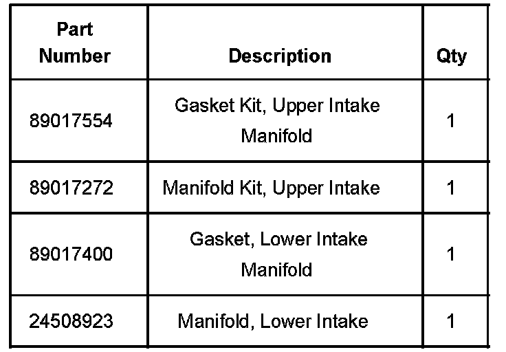 If degradation of upper intake manifold composite material is found, replace the lower and upper intake manifolds with the following part numbers: