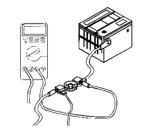 NOTE: The parasitic draw test switch should never be turned to the OFF position with the engine running. Damage could occur to the attached ammeter or the vehicle electrical system.