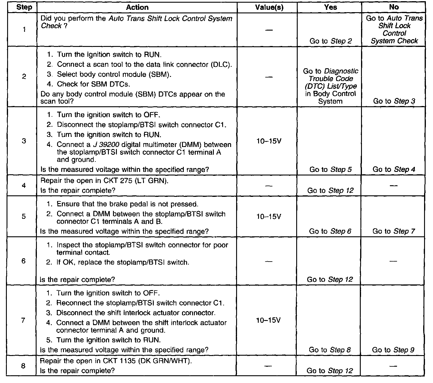 A/T Shift Lock Control Inoperative