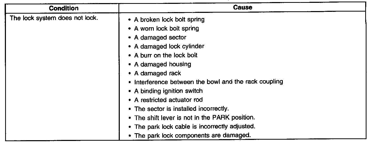 A/T Shift Lock, Lock System Does Not Lock
