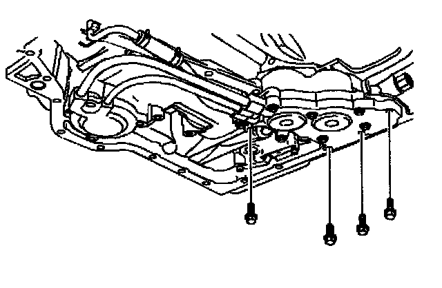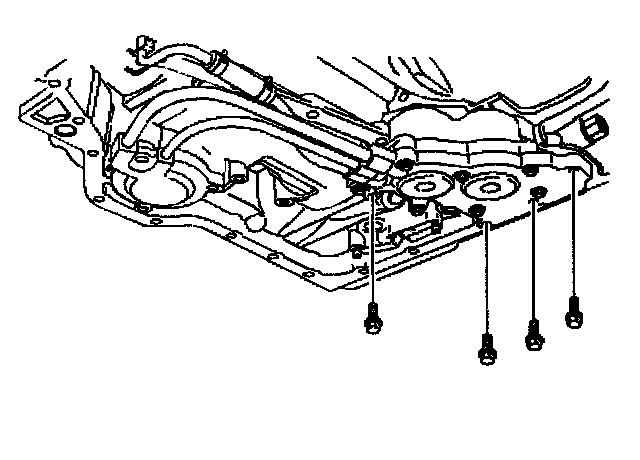 3. Remove the oil pan bolts, the oil pan and gasket. Refer to Oil Pan Replacement.