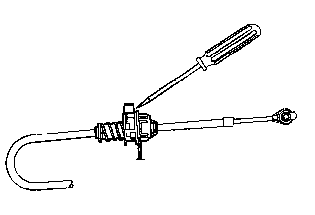 3. Pry on the shift cable terminal at the manual shaft lever pin with an appropriate tool. Prying or pulling up on any other part of the shift cable may result in damage to the shift cable.