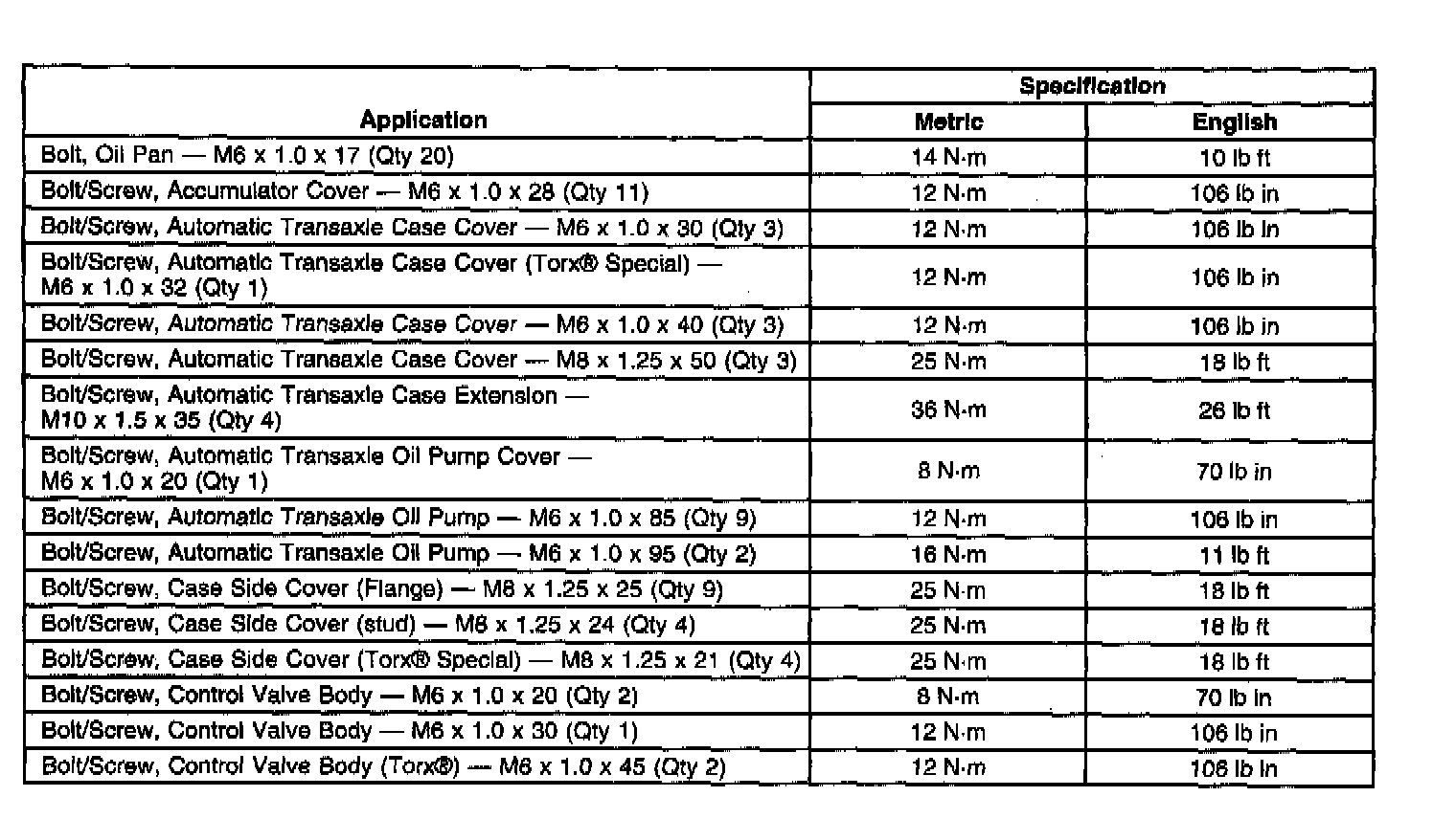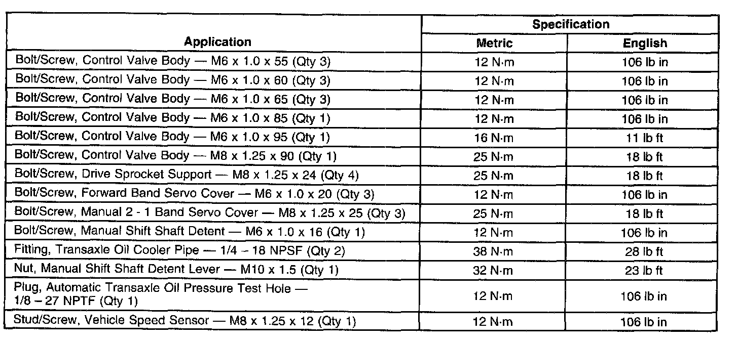 Fastener Tightening Specifications