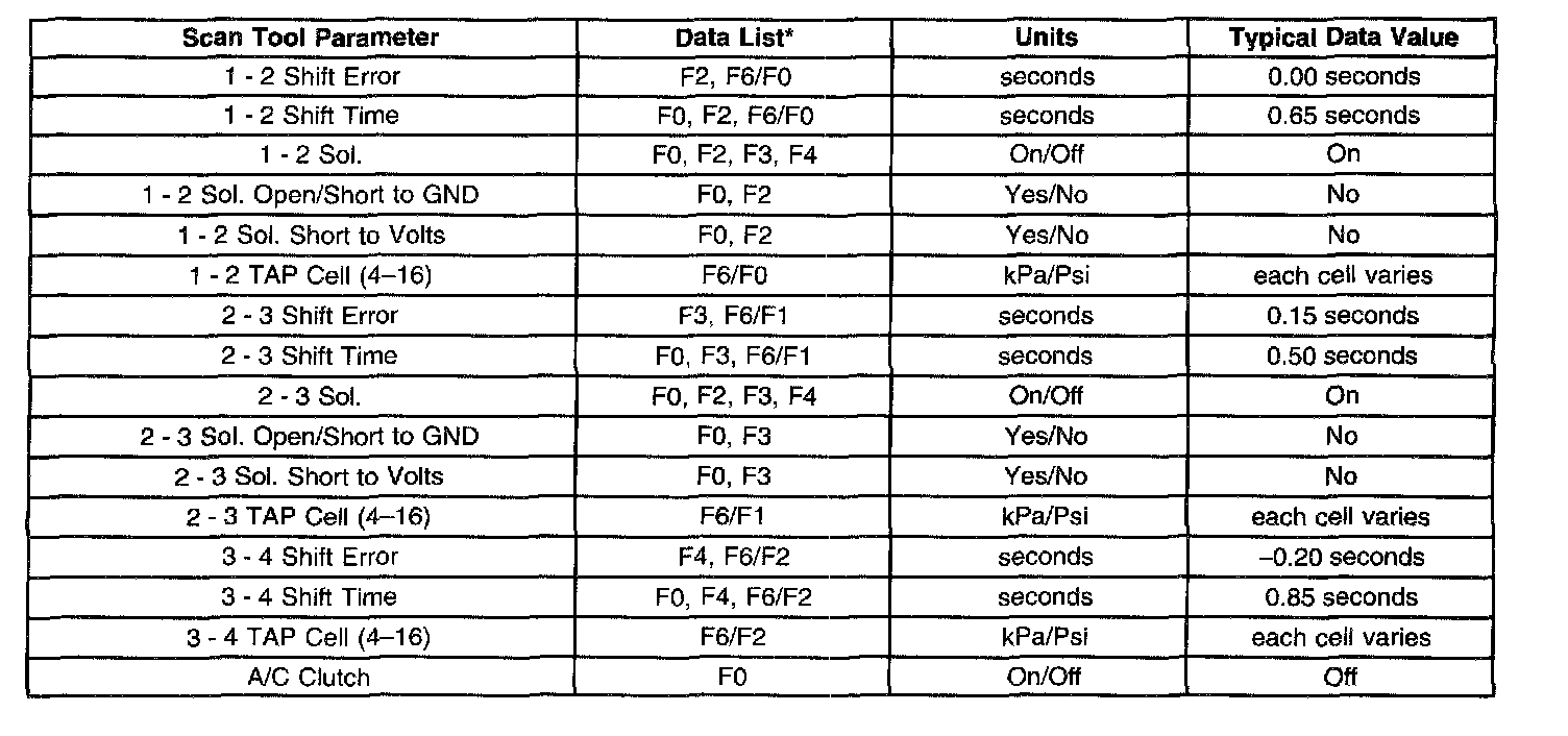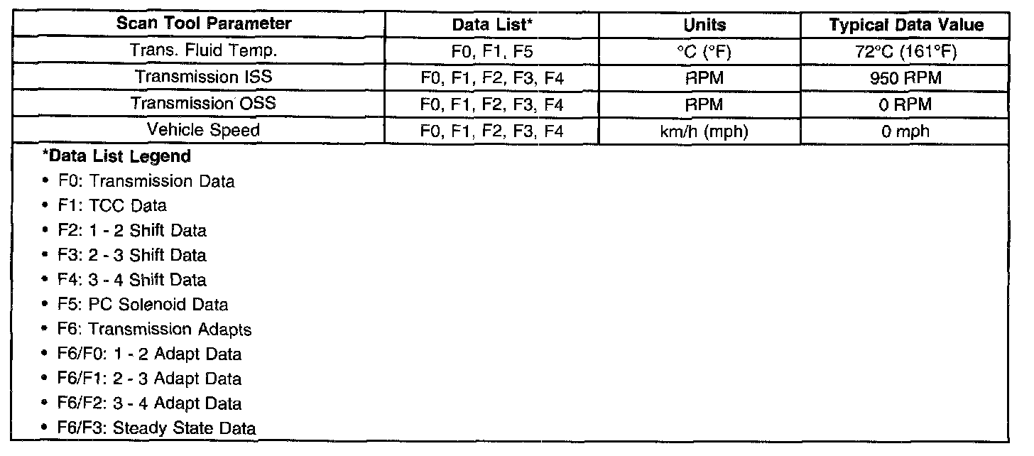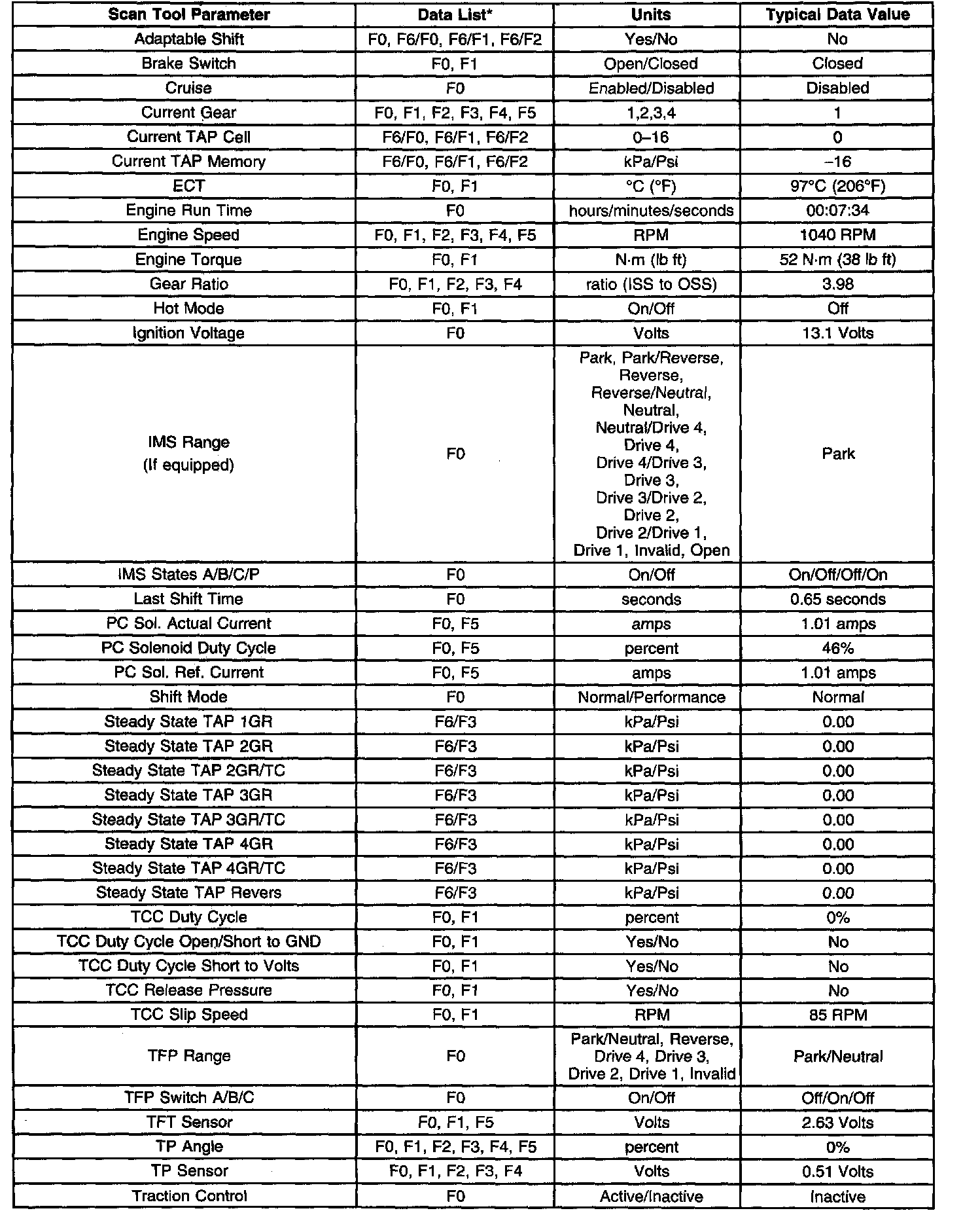 Only the parameters listed below are used for diagnosing. If a scan tool displays other parameters, the values are not recommended by General Motors for use in diagnosis. Scan tool values below were recorded under the following conditions: