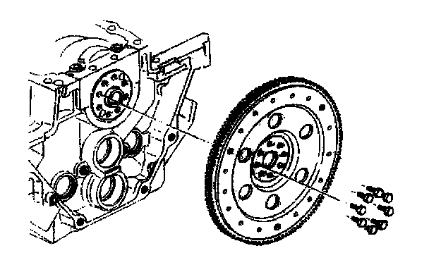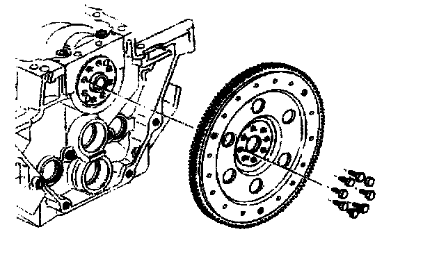 3. Remove the eight bolts attaching the flywheel to the crankshaft flange. Discard the bolts.