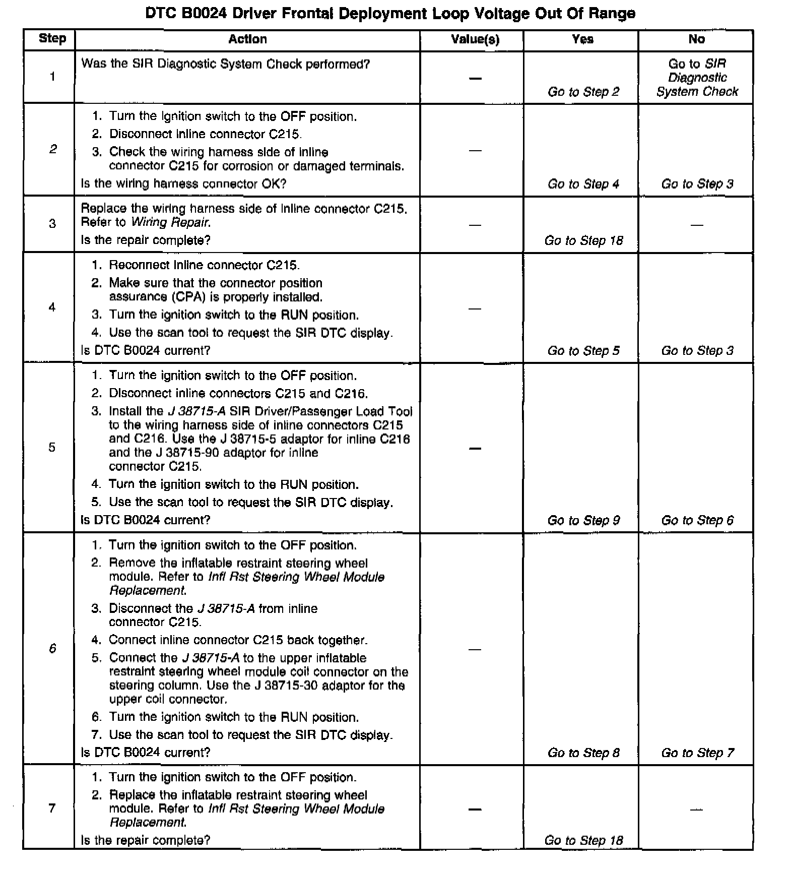 6. This step determines if the Inflatable Restraint Steering Wheel Module Coil or if the Inflatable Restraint Steering Wheel Module is detective.