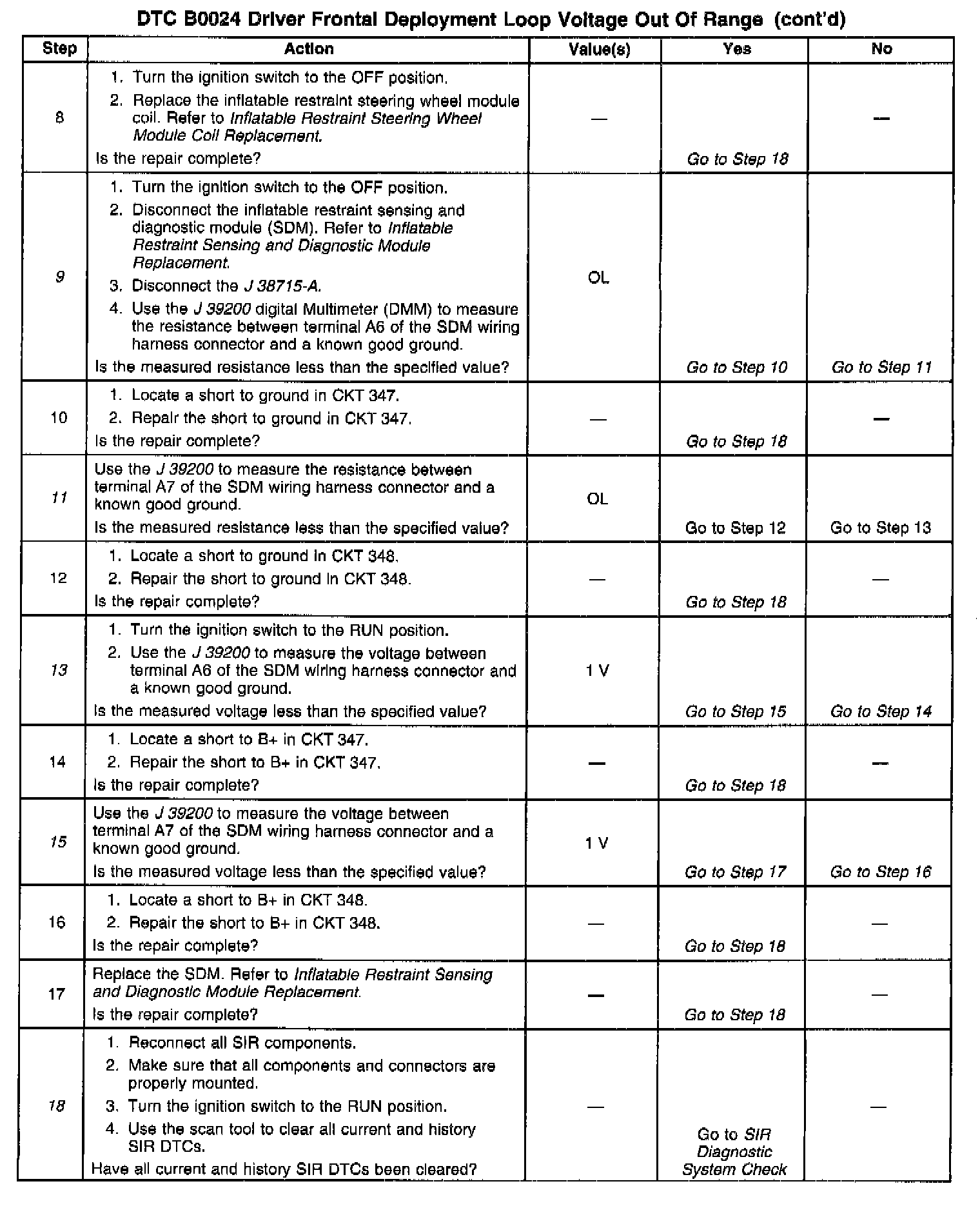 15. This step determines if there is a short to B+ in circuit 348 or it there is a malfunctioning SDM.