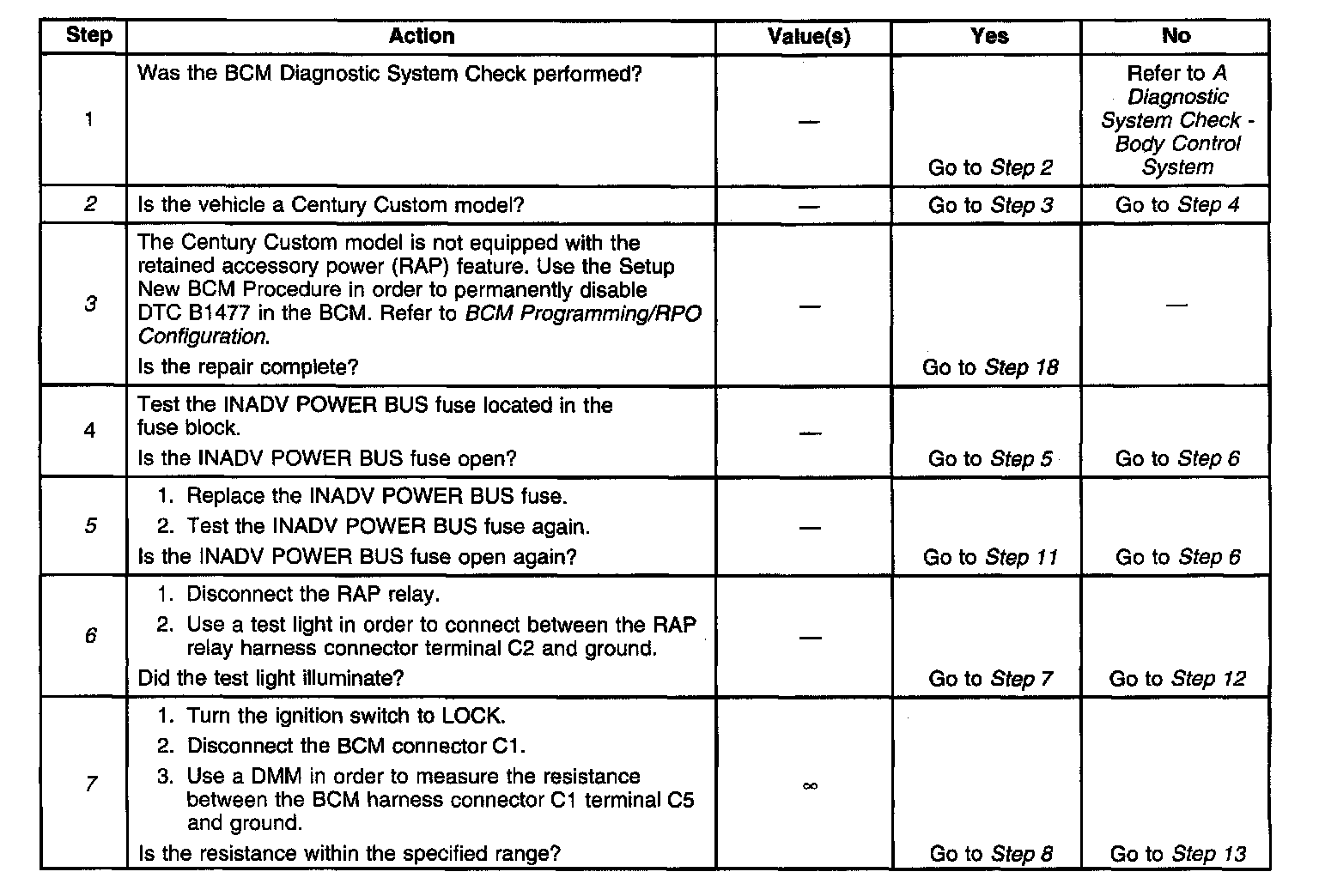 3. The Century Custom model is not equipped with the RAP feature. The Setup New BCM procedure permanently disables the BCM from setting DTC B1477 again.