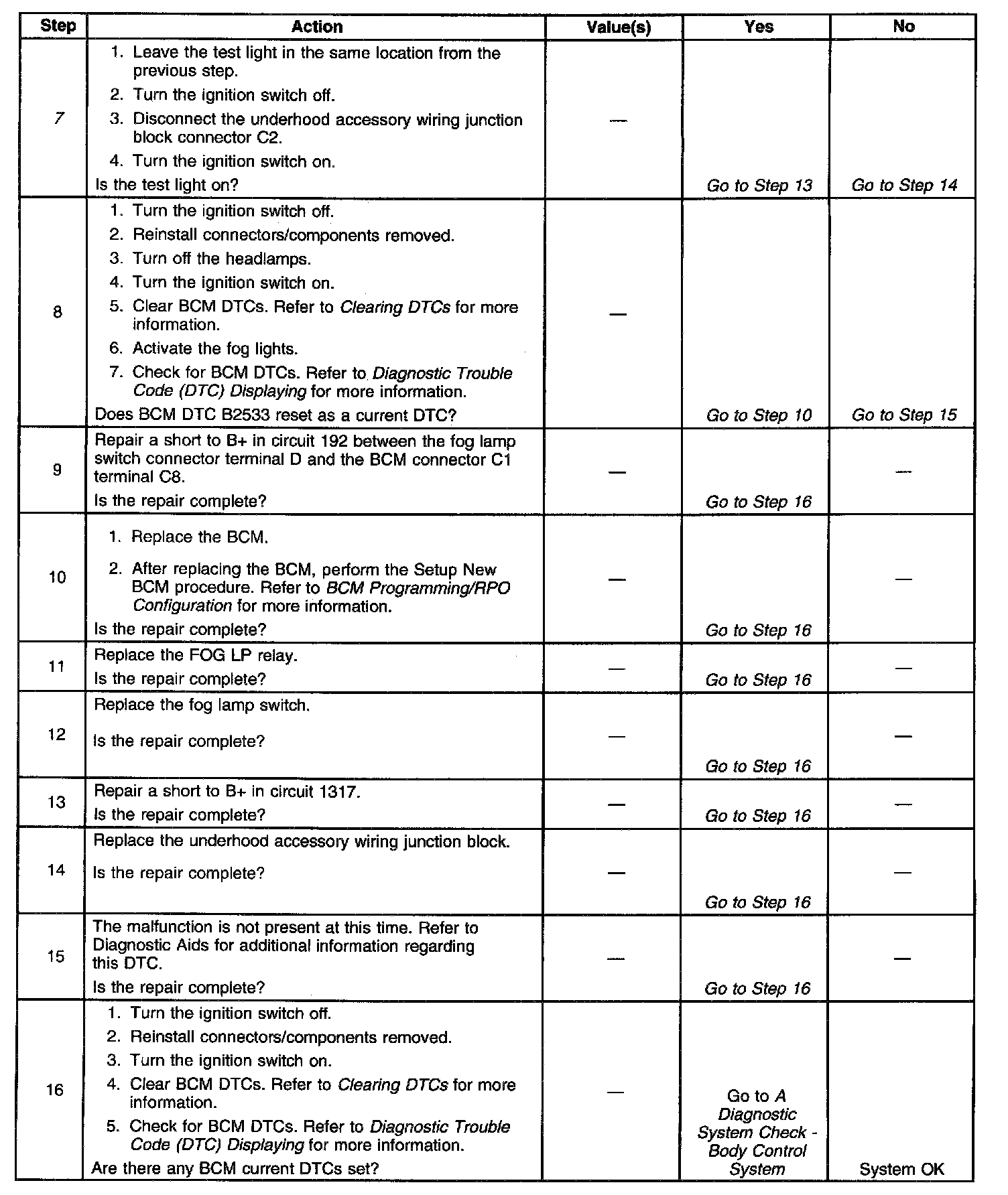 DTC B2533 Foglamp Switch Circuit Shorted To B+ (Part 2 Of 2):